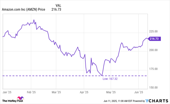 As of this writing (June 11), Amazon's stock has declined by roughly 1% on the year. While that might initially come across as uninspiring, consider how sharply shares have rebounded since bottoming out at around $167 in April.
