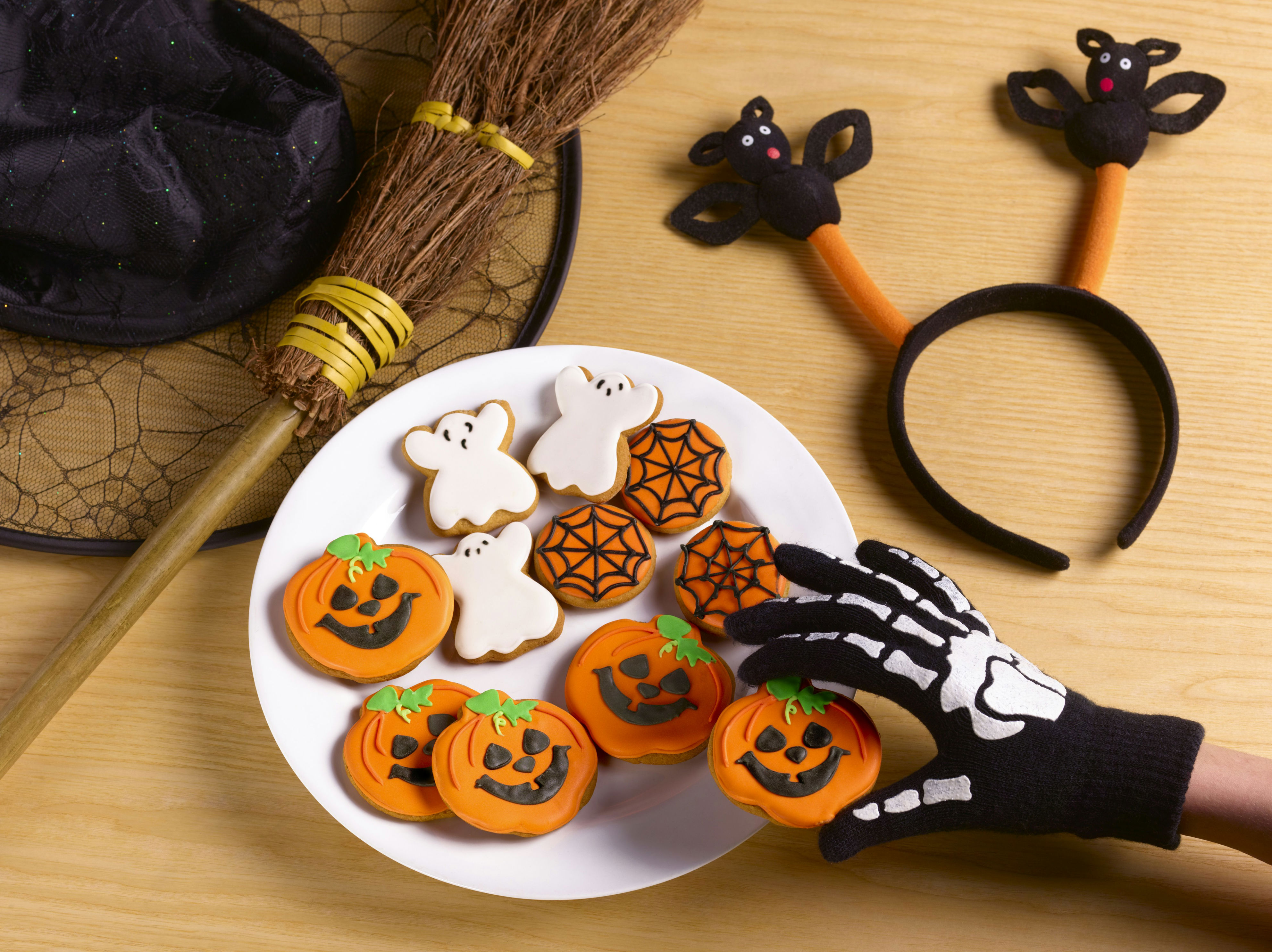 Using an easy-to-follow recipe, you can bake some spooky Halloween biscuits. All you'll need is a set of cookie cutters to shape the biscuits. You could even do round biscuits and decorate them with spider webs or as pumpkins. -