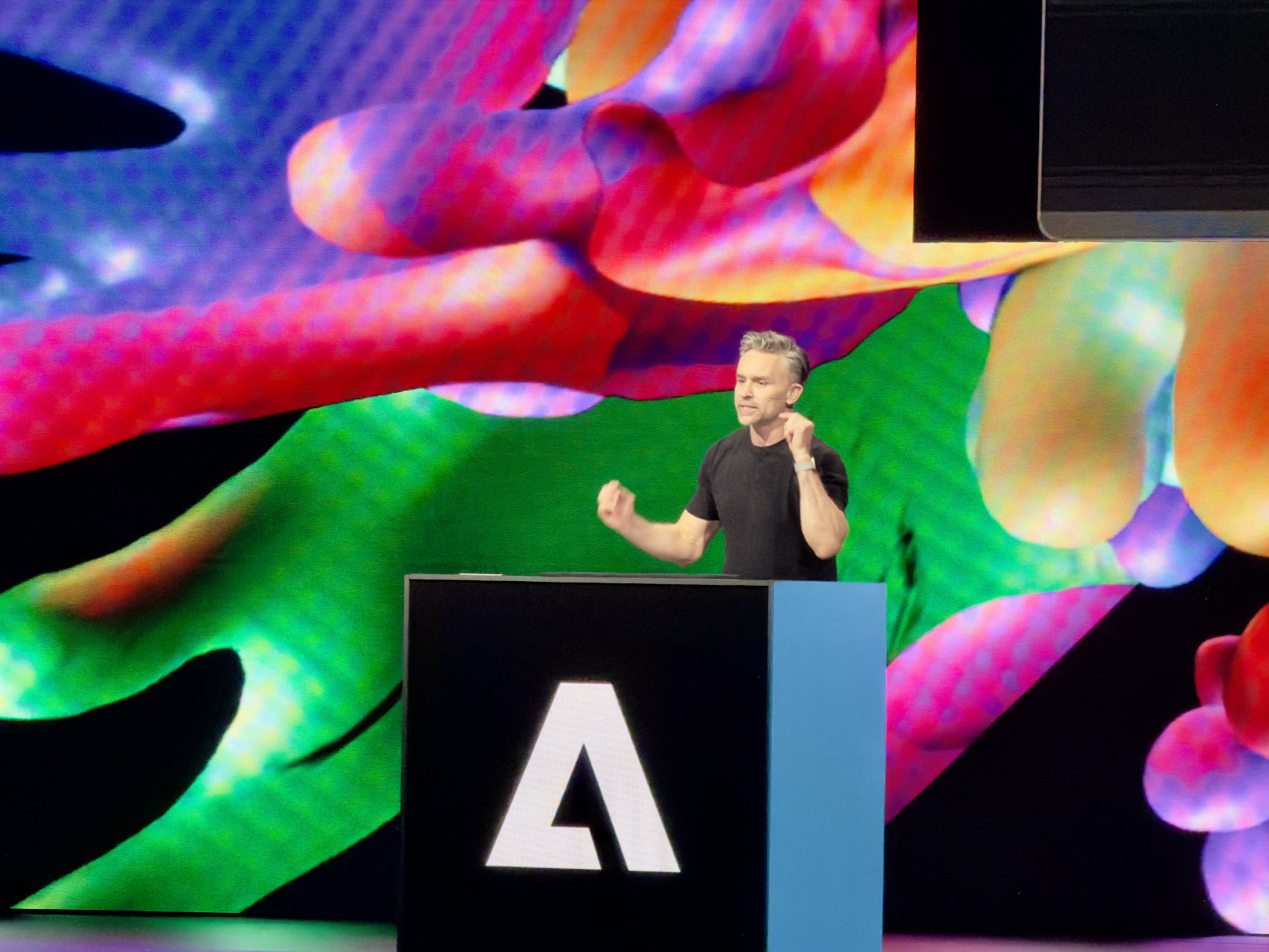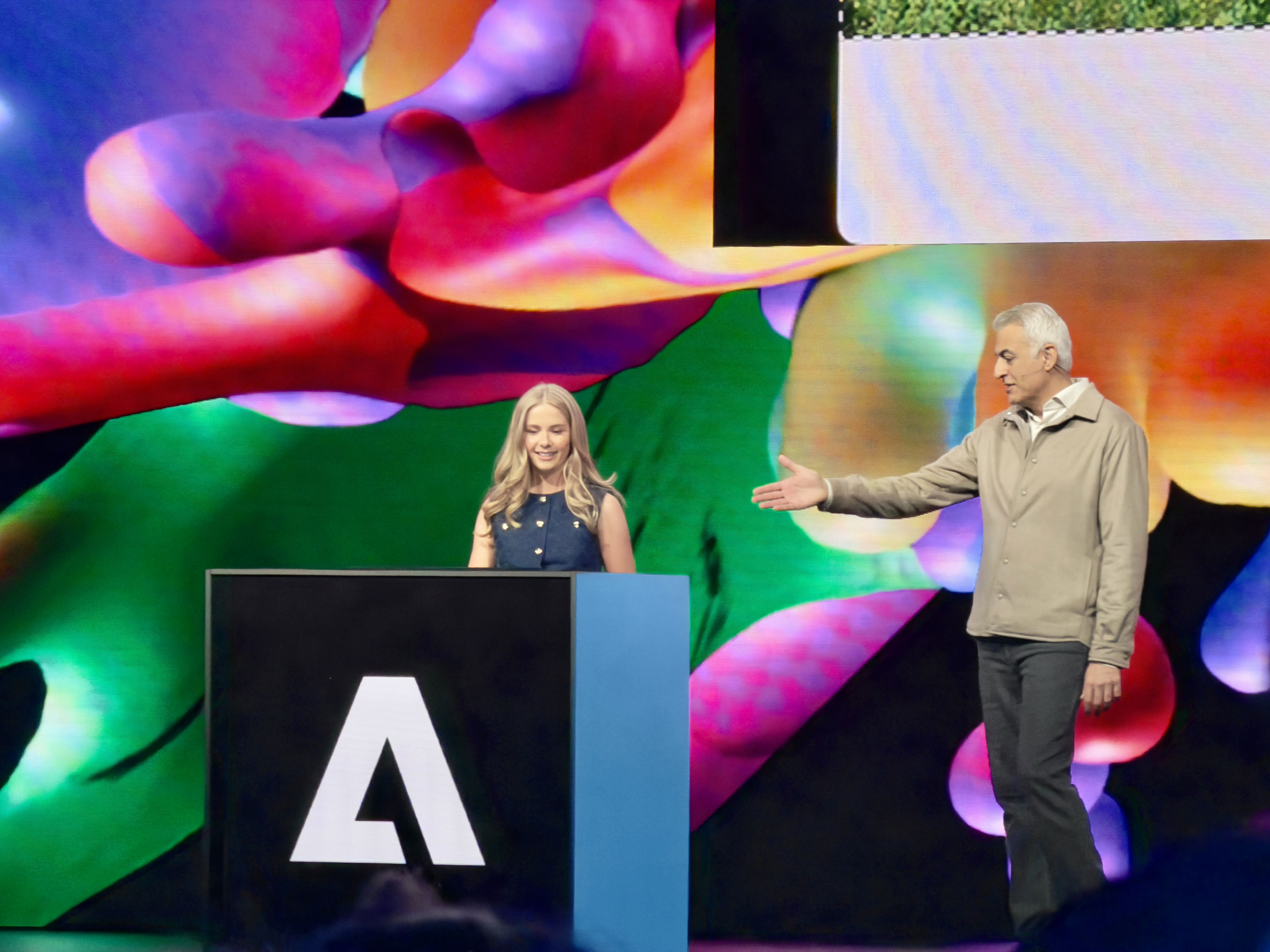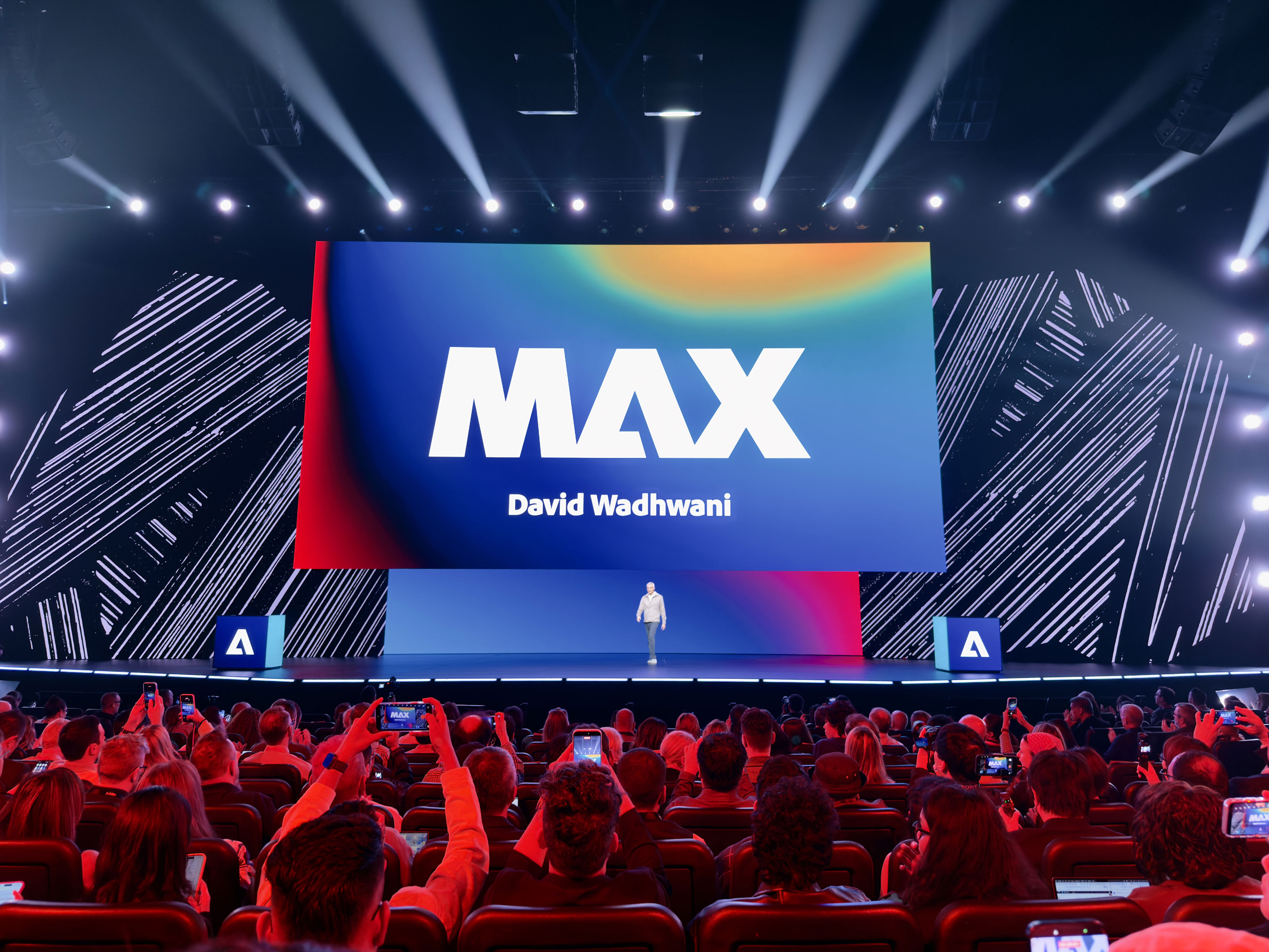 David Wadhwan, Digital Media President for Adobe, steps up to unveil some of the new launches. “We've never shown more innovation on stage,” he states, signaling the start of a series of impressive demos.