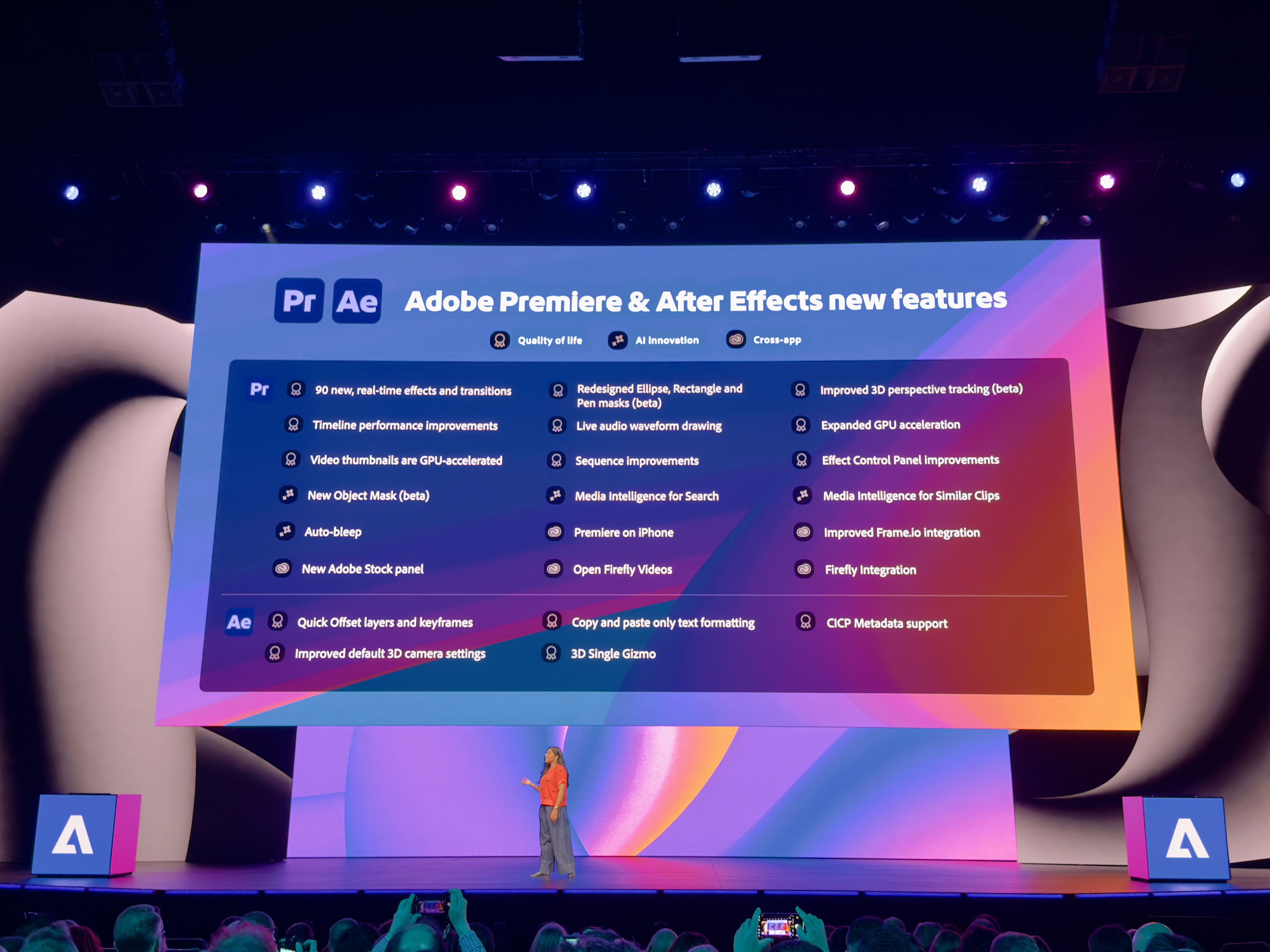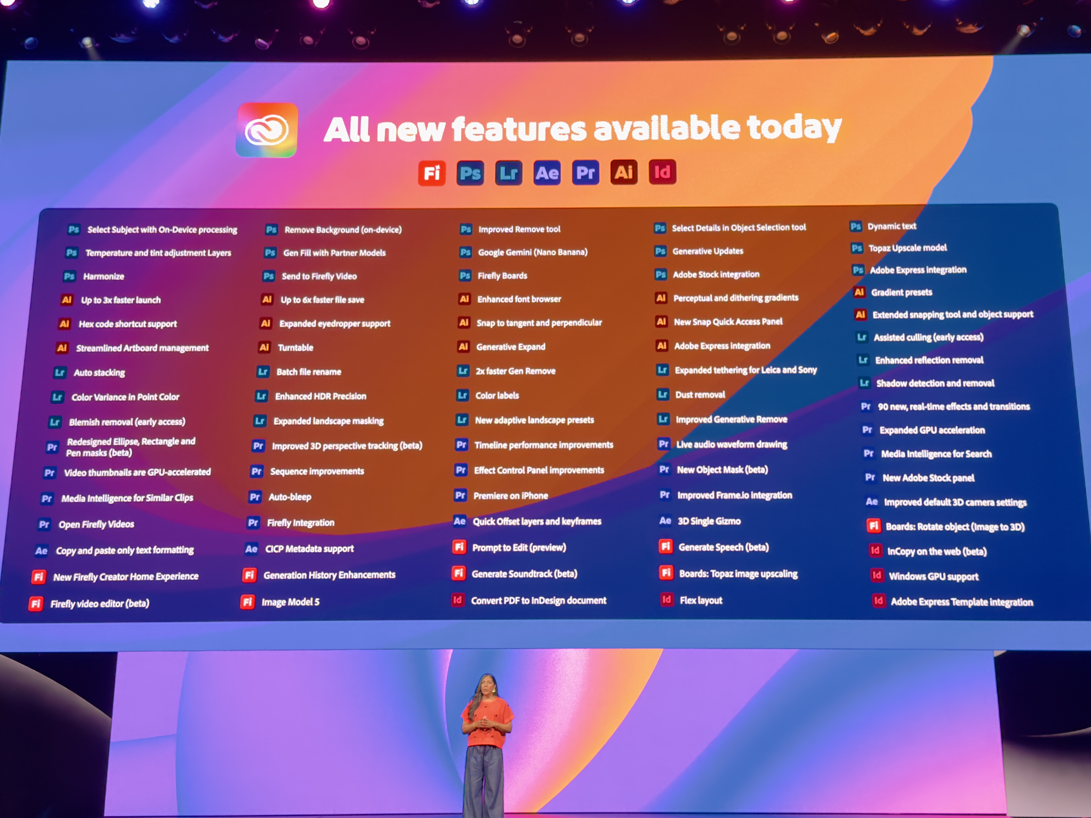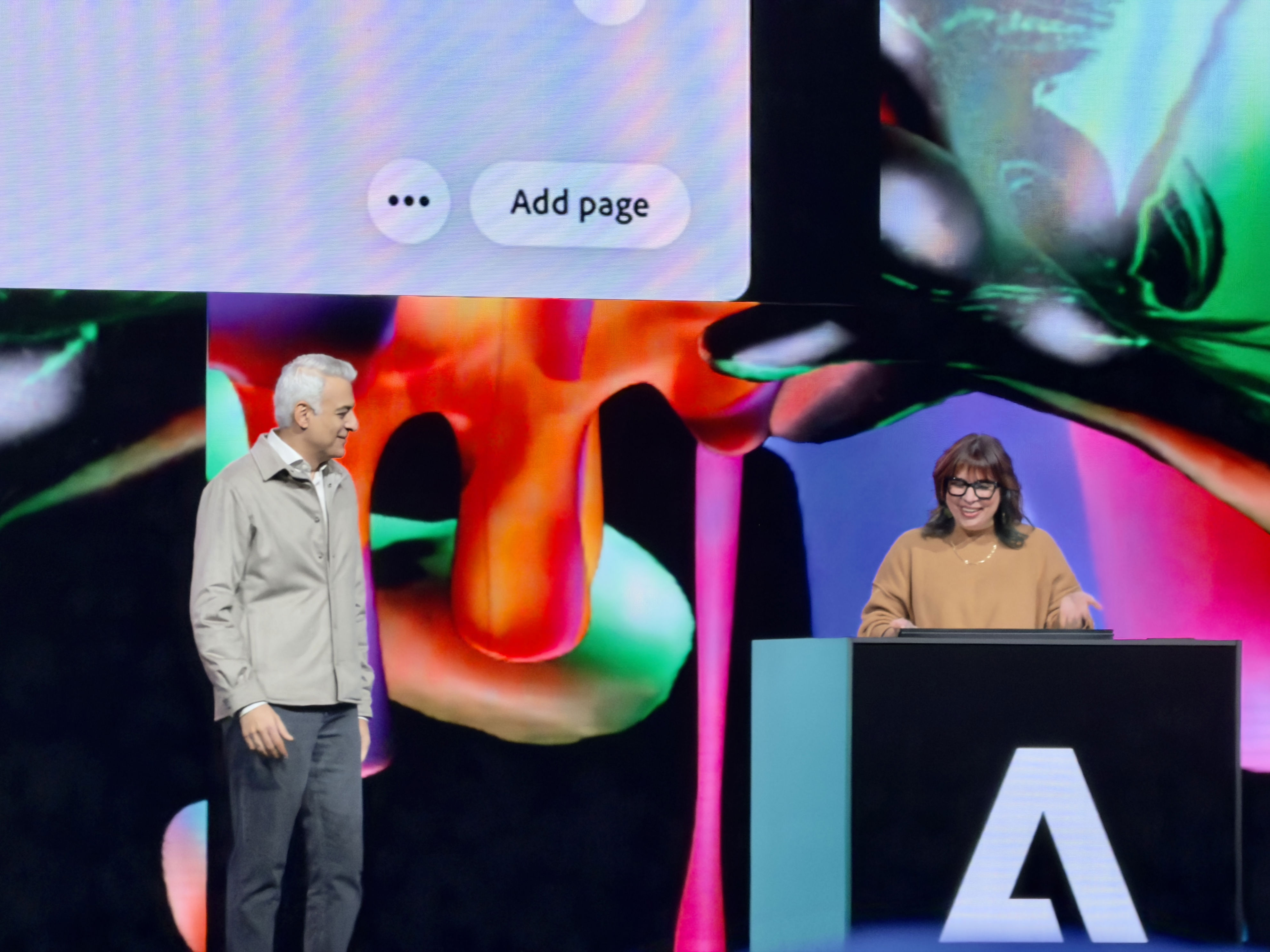 David Wadhwan, Digital Media President for Adobe, steps up to unveil some of the new launches. “We've never shown more innovation on stage,” he states, signaling the start of a series of impressive demos.