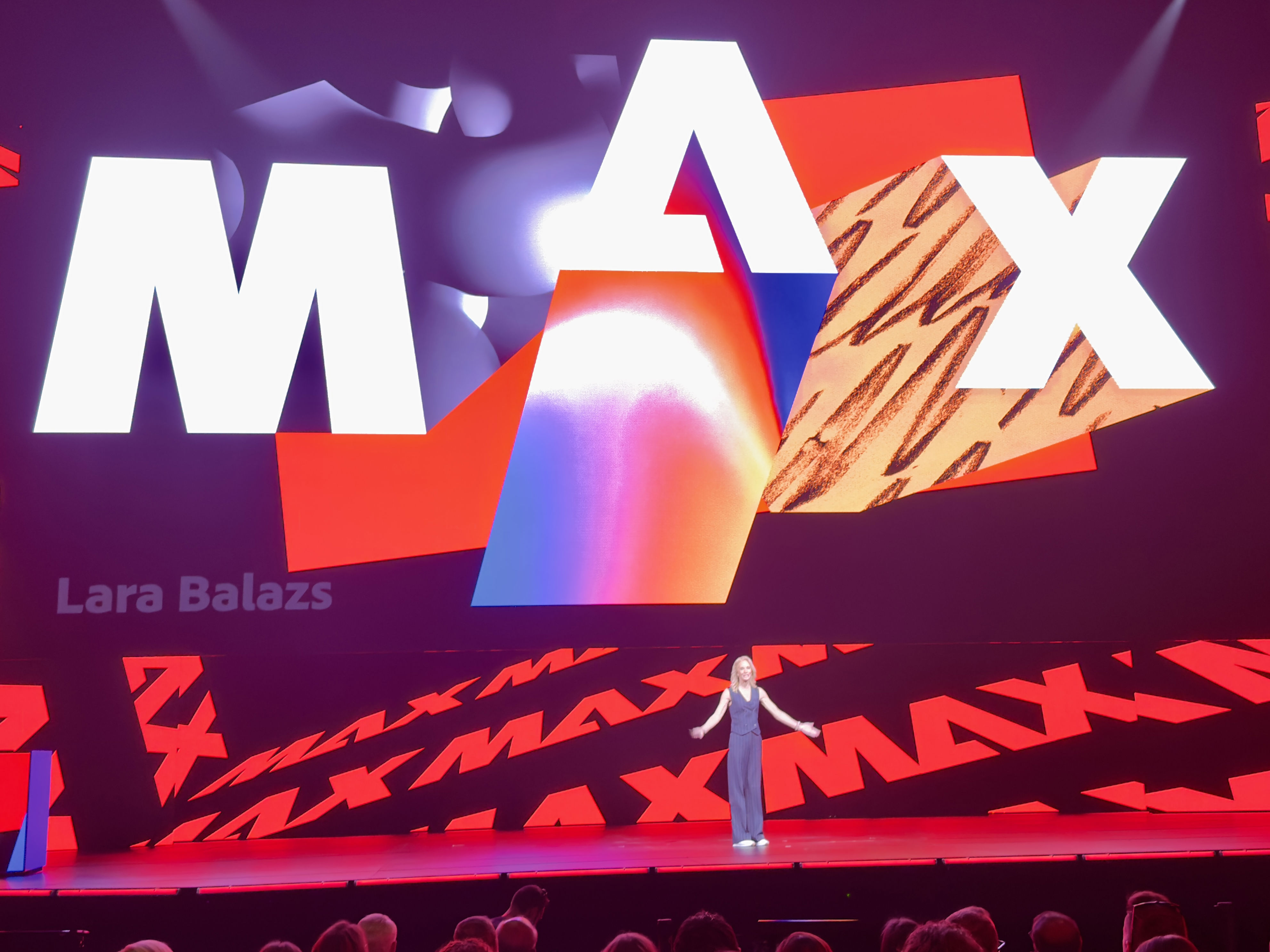 CMO Lara Balazs welcomes the audience, emphasizing that AI will not change who you are, but will amplify what you do. She describes the technology as a “creative partner, ally, and collaborator.”