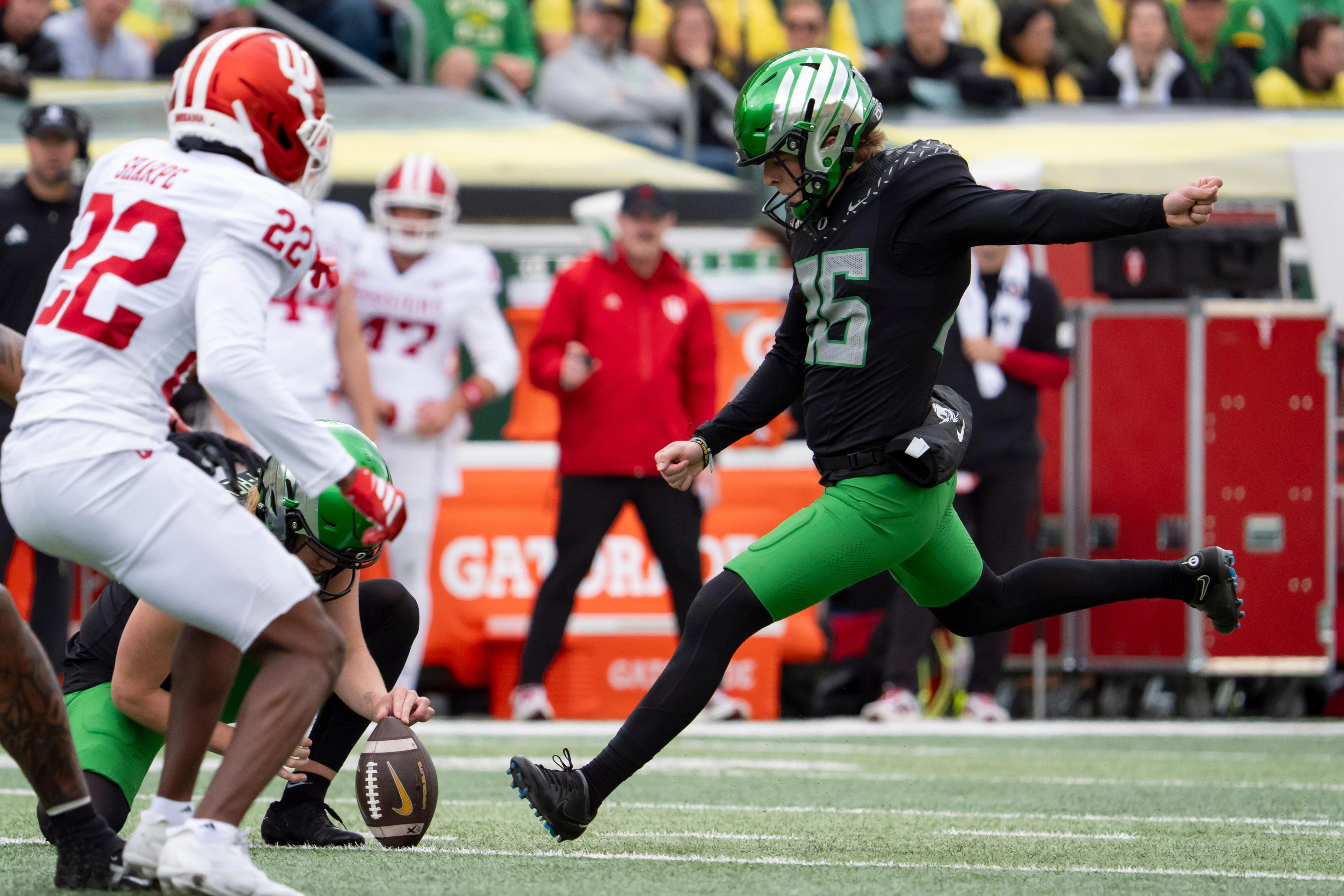 All right, good to be back in Eugene. Certainly excited about the opportunity to be in front of our fans again this week. I know they'll have a great turnout. It's good to have a little bit later game as well. I think that’ll give us an opportunity to get some more players here, to be able to see us also, but ultimately, an exciting opportunity for our players to continue to level up and raise our standard. You know, there's a lot of things that Wisconsin actually does really well. Their special teams play, defensive play has been really good. And you look at offense, you know, they've been affected by injuries. But there's just, you watch the film, they're like, What? Man, The ball bounced the wrong way on this play. They've just been kind of unfortunate bad luck on some some plays. But you see a team that's capable of having a lot of success. They're really well coached, got a lot of respect for Coach Fickell and the job they do, they stress you in a couple different ways. It'll be a good challenge for our team so excited about this matchup and a chance for our guys to go compete.