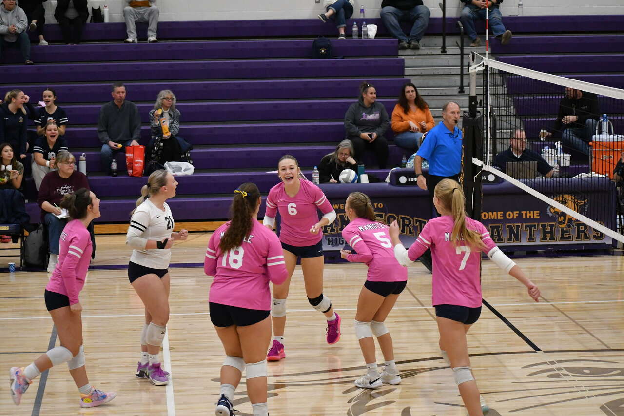 In the third set, Frankfort's Ella Sweeney secured two aces to help the team take a 6-4 lead. Manistee took a 7-6 lead before Frankfort's Ella Newbold put the Panthers ahead 9-7.