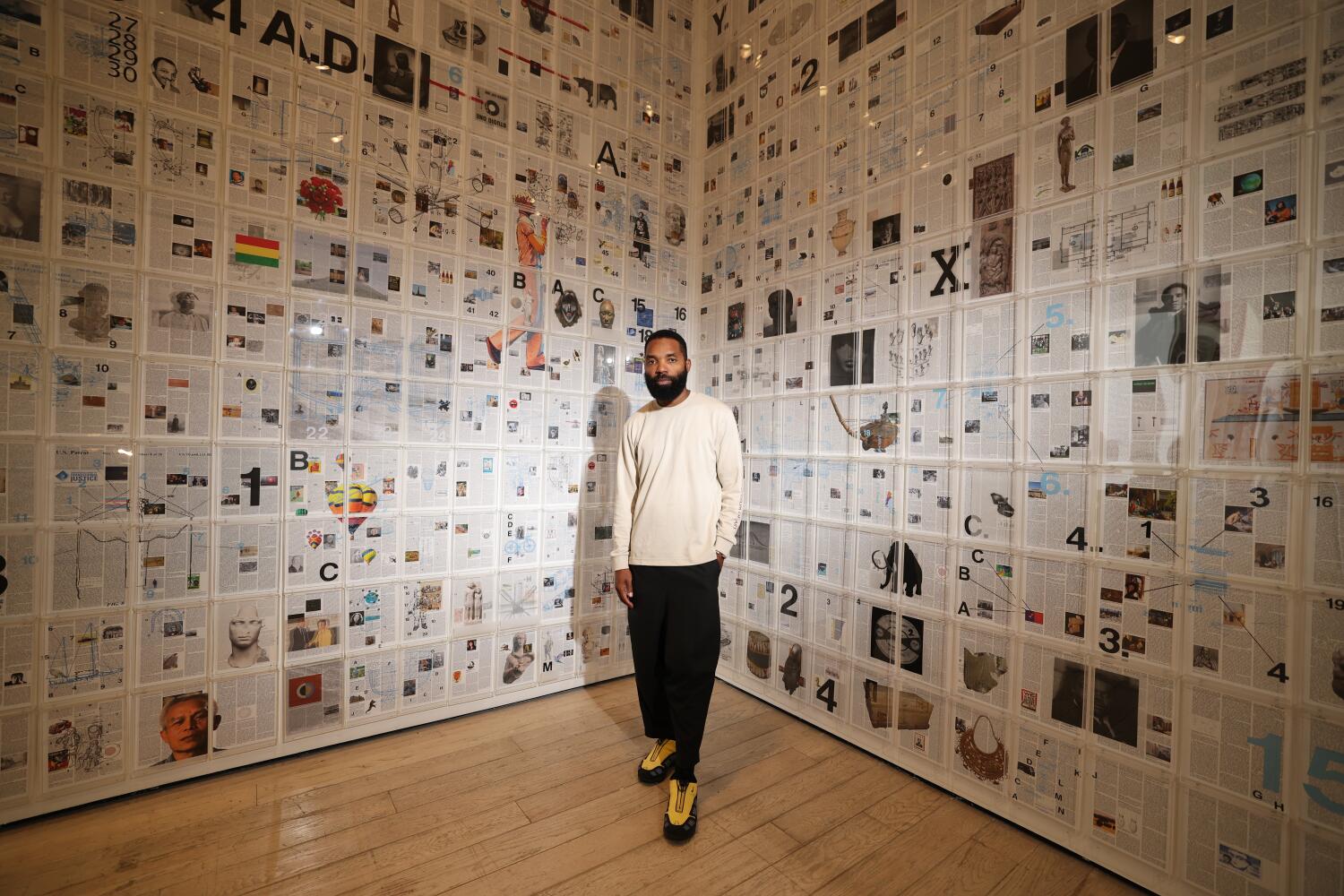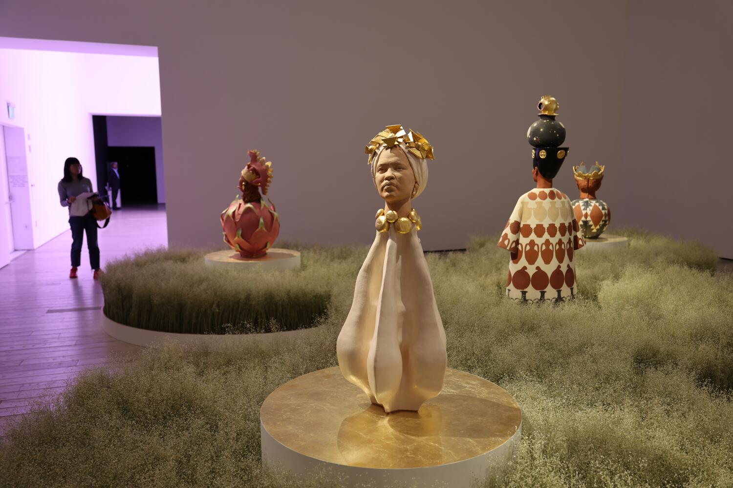 Now, a collection of Strachan’s work is on display at the Los Angeles County Museum of Art in an exhibition titled “The Day Tomorrow Began.” This is his first museum show in the city and offers a multisensory experience that challenges viewers to reconsider what they know about human progress. The exhibition includes illustrations, diagrams, traditional African hairstyles, mohair collages created with South African weavers, ceramics, and even a field of rice grass designed to evoke olfactory memories.