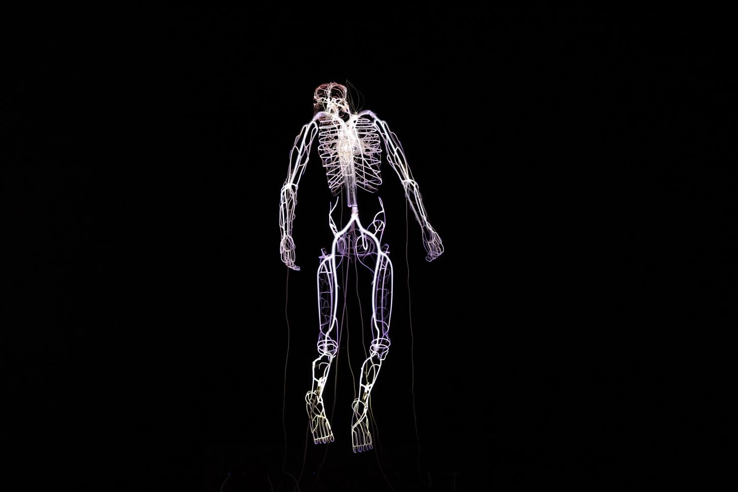In one darkened room of the exhibition, a life-size glass portrait of Robert Henry Lawrence appears to float, lit from within by argon trapped in electrified tubes that mimic the human circulatory system. This piece symbolizes the idea of capturing and honoring Lawrence’s spirit, even though he never got to transcend Earth’s atmosphere.