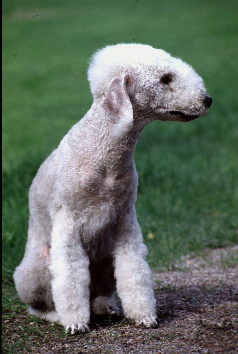 Standing between 15 and 17.5 inches tall and weighing between 17 and 23 pounds, Bedlington Terriers look sophisticated and regal—and they can live up to 16 years. Their hair and coat has a wool-like texture, giving them a distinctive look that will turn heads.