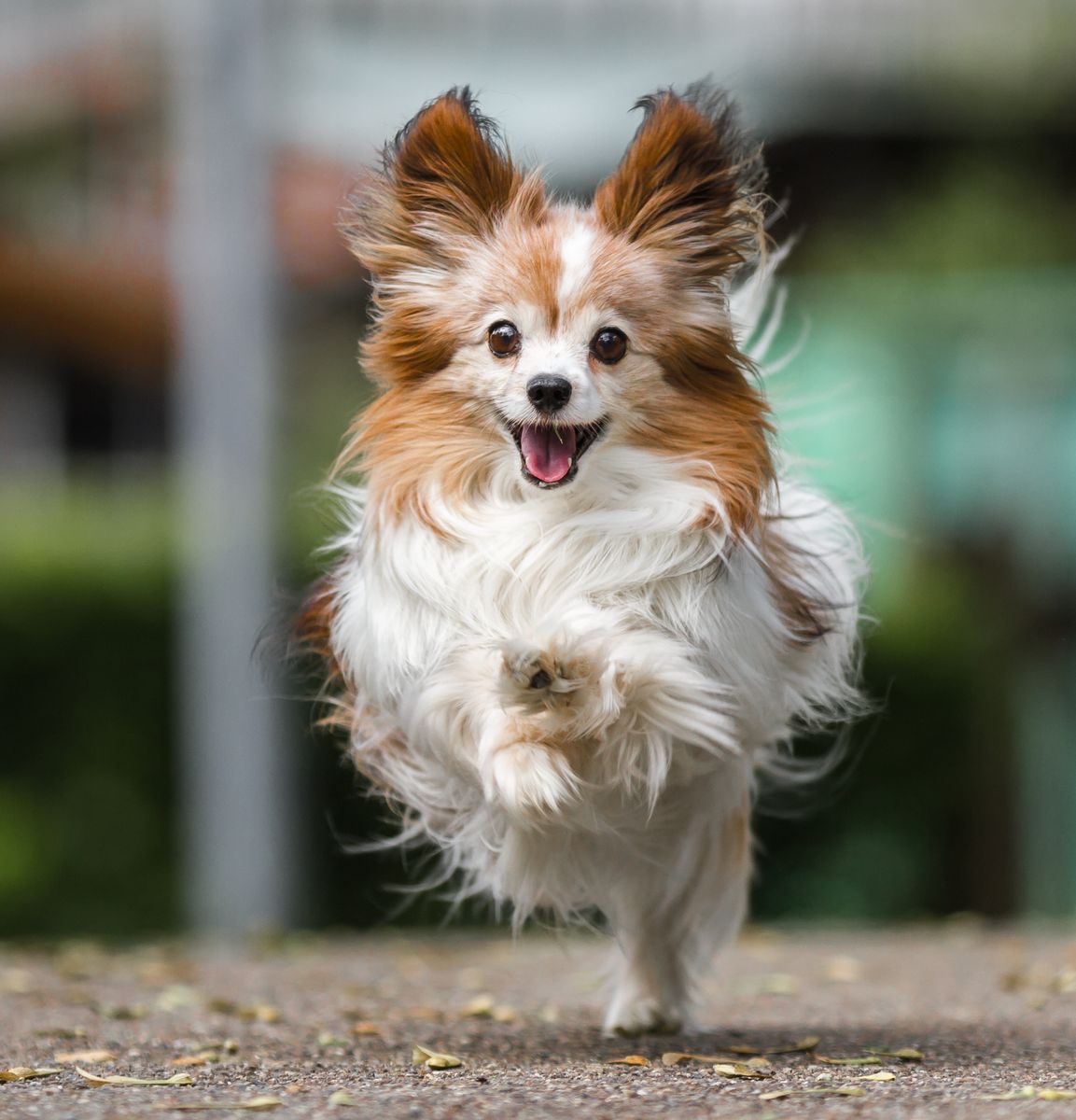Thanks to their medium-size coats, be prepared for a bit of shedding—but luckily, grooming will only be required every few weeks. Always alert, Papillon dogs stand between eight and 11 inches tall and weigh around five to 10 pounds. They are friendly and make great pets for those who enjoy happy and energetic pups.