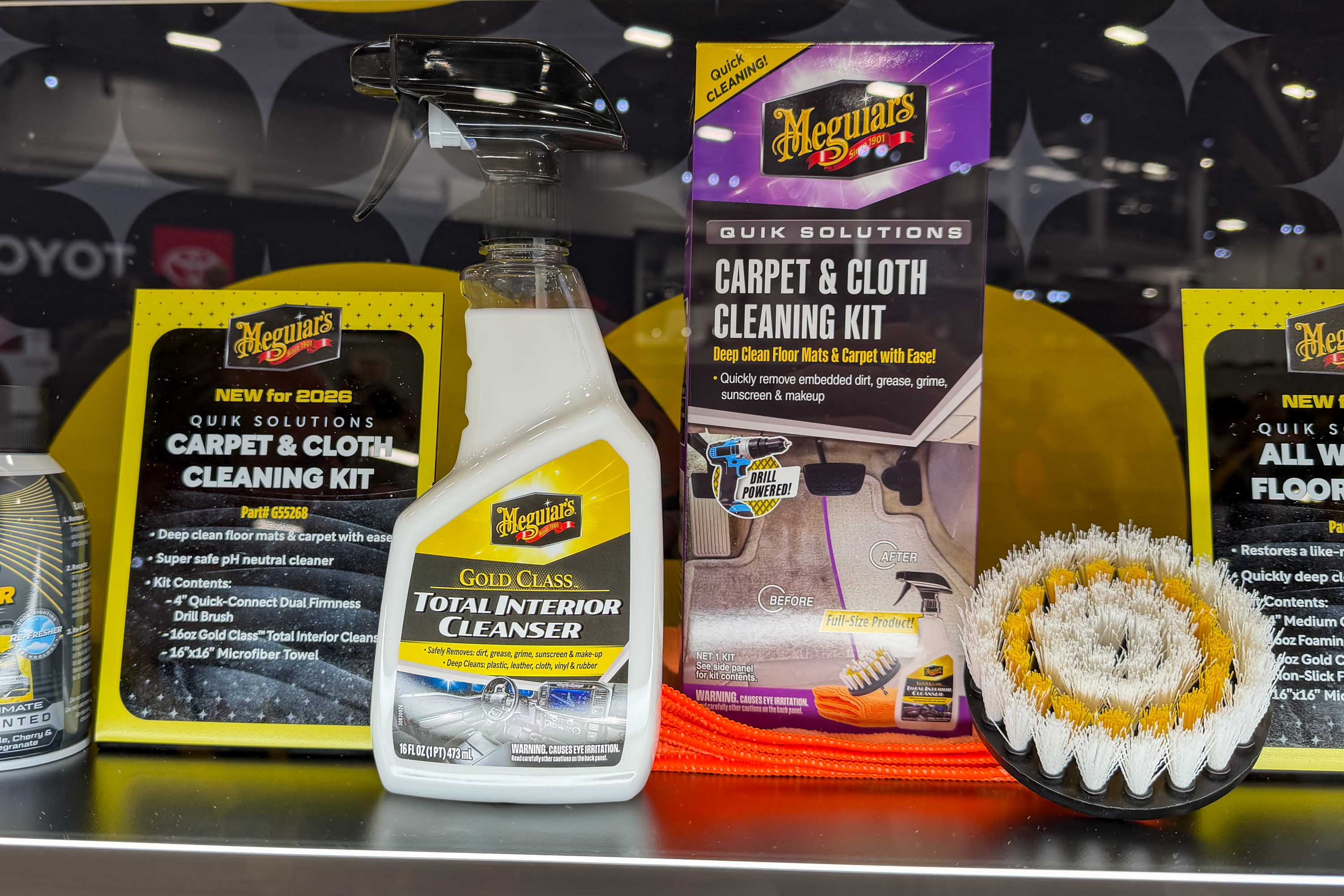 Meguiars continues to make car cleaning easier. It is launching a wide range of Quik Solution Kits, which bundle up its products for easy solutions to specific car cleaning needs. What caught my eye at SEMA was the Carpet and Cloth Cleaning kit. It includes a brush attachment for a hand drill and a new pH-neutral Total Interior Cleaner. This setup should be great for deep cleaning interiors, especially those dirty carpets and floor mats. The kit will be available next month.
