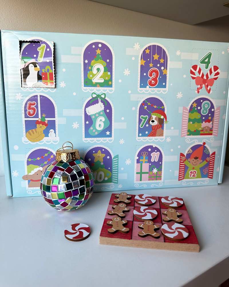 Before you buy, you should know that this isn't a classic Advent calendar - in that the 12 windows don't open to separate compartments (you have to open the whole box at once to reveal any of the crafts). Untraditional as it may be, you do get 12 surprises inside, and they're numbered so you could do one a day like a traditional Advent calendar - or you could break the calendar rules and invite over some friends for a holiday craft night! I went out of order because the first one that caught my eye was the DIY disco ball ornament. Even though it took me about an hour to meticulously place the sticky "gem" pieces onto the clear plastic ball, the end result was so worth it (as a Swiftie, the shimmery colors reminded me of Eras Tour confetti!). For $35, this calendar is a pretty good value considering the number of DIY keepsakes included.