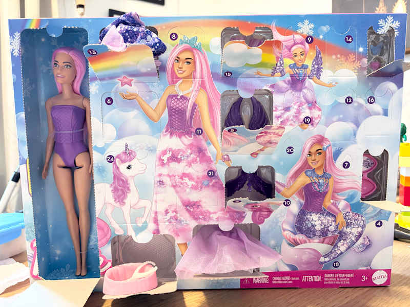 Did I get this Advent calendar for my 6-year-old niece? Yes. Did I also buy one for myself? Also, yes. When I was a kid, I loved Barbies and had a huge collection of outfits and accessories, so this calendar brought back all those memories. The first day reveals a full-size Barbie doll with pink hair (honestly, I'm jealous), and as you go through the month there's jewelry, a mermaid tail, fairy wings, pets, and more. I keep her on my desk and change her outfits when I need a work break (or just want to change up her vibe). Oh, and my niece loves it, too. While this exact one is sold out, you can still buy a super similar version that includes fairy, unicorn, and mermaid accessories.