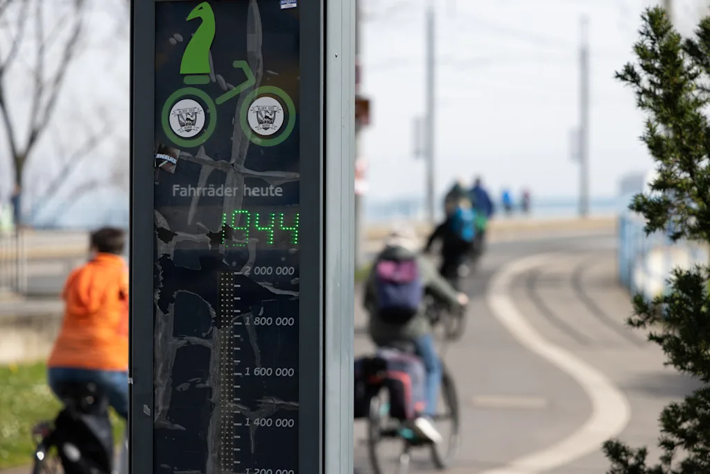 Bonn is shifting from painted lanes to a growing protected network; about 20% of streets now have protected bike lanes, and more than half the city has 30-kph (18.6-mph) speed limits. The city remains relatively car-dependent, but bike counters show rising use, and cycling mode share has increased from 15% in 2017 to 21% in 2024.