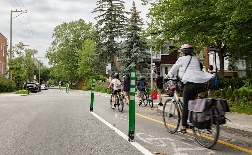 Quebec launched plans in 2023 for a 150-kilometer (93-mile) bike network. On the main corridor, new bike and pedestrian infrastructure has boosted biking 6.9% and walking by 94%. Its fully electric-bike-share system, introduced in 2021 for the city’s hilly terrain, grew from 100 bikes to 1,300 bikes and 1.3 million trips in 2024; 50 more stations and 500 more bikes were added this year. More than half of city roads now have speed limits of 30 kph (18.6 mph).