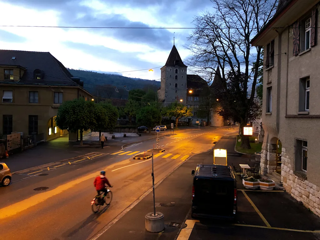 Bern’s bike mode share sits at 19%, with a mix of painted lanes, bicycle streets, and about 18 kilometers (11 miles) of protected paths. Some major boulevards have high-quality separated tracks, although the network still needs expansion. The city provides around 2,600 station parking spaces, extensive on-street racks, and easy bike rental access through the SwissPass system. Cargo bikes are common and supported by local rentals.