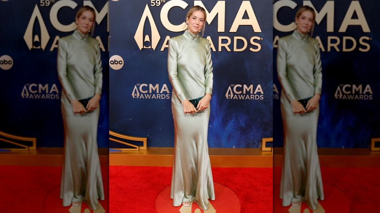 Hayley Hubbard, wife of Tyler Hubbard, made an appearance at the 2025 CMAs in a long satin gown that resembled an old-fashioned nightgown. The mock turtleneck and minimal styling gave off a sleepwear vibe, which was far from the glamour expected at an awards show. With little jewelry and a simple updo, there was no “wow” factor to her outfit. On the bright side, she could have easily transitioned from the event to bed without changing clothes.