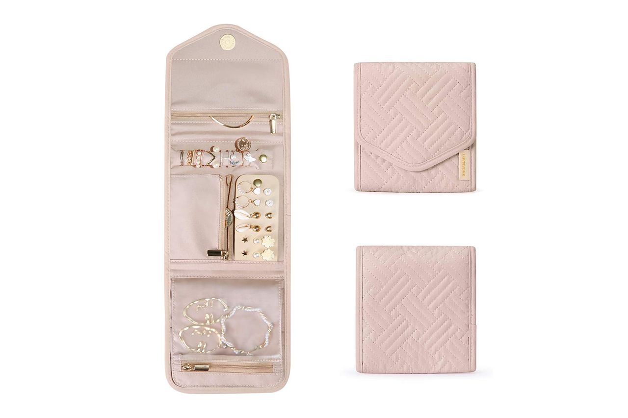 Jewelry might elevate your outfit, but wearing it through the airport isn’t worth the hassle. “I pack my jewelry in my backpack or carry-on instead of wearing it, so I don’t risk setting off security,” Crista said. Beyond triggering alarms at TSA, traveling with bulky or expensive pieces can increase your chances of losing something valuable, or worse, having it stolen. A better strategy? Stow your accessories in a compact, zippered travel case so everything stays organized, secure, and easy to access once you land.
