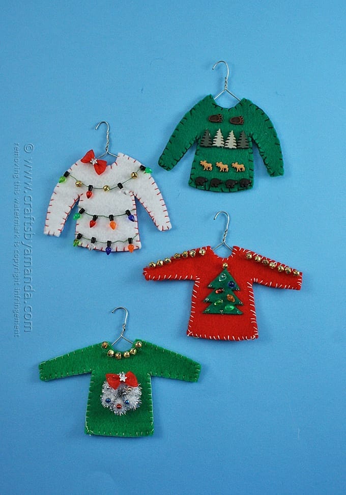 Your tree can join in on the fun with these mini ornaments. They’re too cute and can also serve as inspiration for your own sweater.