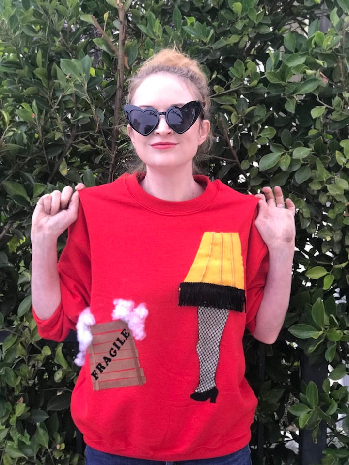 This sweater pays homage to the iconic leg lamp from the classic film. It even lights up with an LED necklace for added flair.